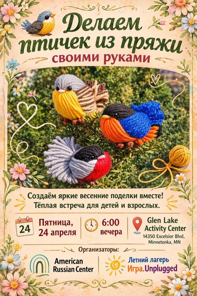Spring has long been a season of renewal, creativity, and celebration in Slavic cultures. And we’re excited to invite you and your family to experience this tradition through art at our upcoming Family Craft Night. Children and adults come together to create handmade yarn birds, inspired by Slavic folk crafts and seasonal symbolism.